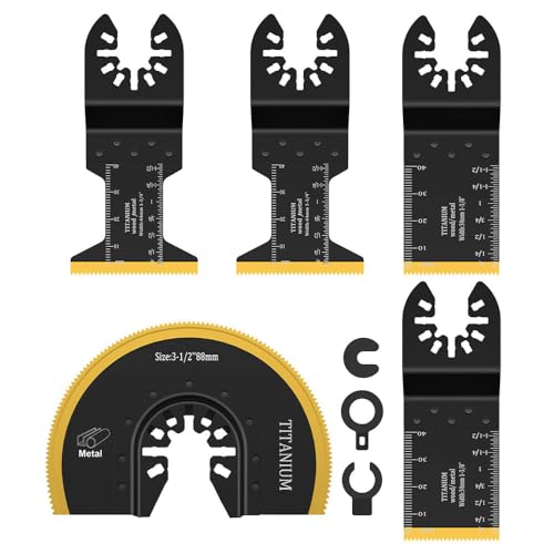 5 st svängande verktygsblad titan multiverktyg blad klippsågblad snabb hastighetsskärning för trä, metall, naglar och hårt material för Dewalt Rockwell Milwaukee Makita Ryobi med 3 extra adaptrar