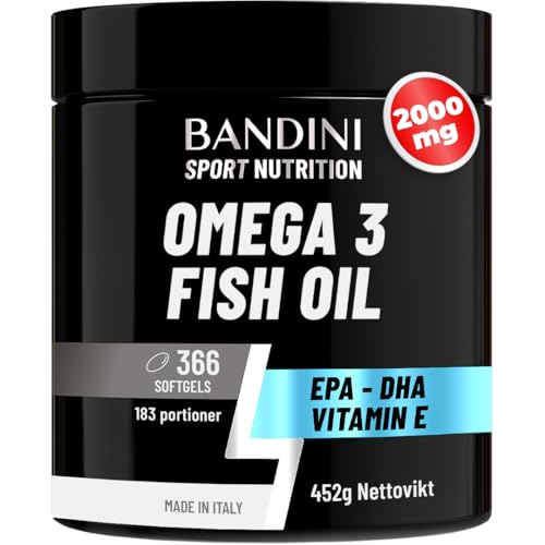 Bandini® Omega 3 superkoncentrerad fiskolja | 366 Softgel Kapslar 360mg EPA och 240mg DHA per daglig dos | Kosttillskott rikt på fettsyror | Hjärt-, hjärn- och synfunktion