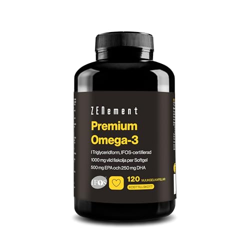 Premium Omega 3 IFOS Triglycerider för Optimal Absorption – 1000 mg EPA + 500 mg DHA per Daglig Dos – Vild Fiskolja FOS-certifierad – 120 Mjuka Kapslar