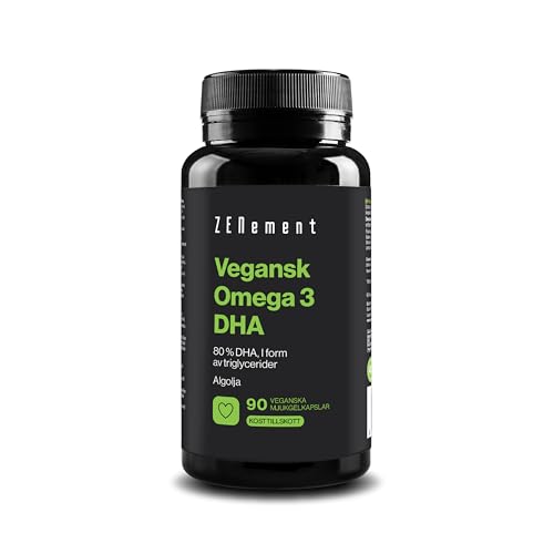 Vegansk DHA (Omega-3 med 80% DHA) - från Algolja - Hjärna och Syn - lämplig under Graviditet och Amning - i Triglyceridform för bättre upptag - 90 Veganska Mjuka Kapslar