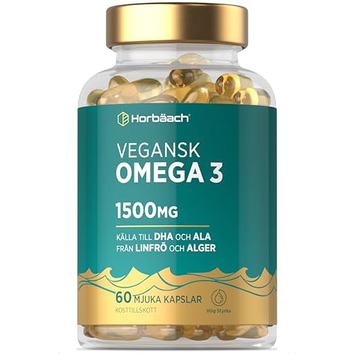 Omega 3 Vegan 1500mg | Algenoile 60 Kapslar | DHA & EPA | Växtbaserat Kosttillskott | av Horbaach