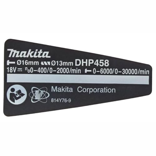 Makita 814Y76-9 typskylt för modell DHP458 kombi/borr och skruvmejsel