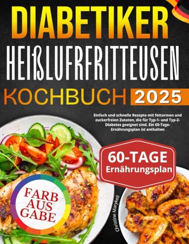 Diabetiker Heißluftfritteusen Kochbuch: Einfach und schnelle Rezepte mit fettarmen und zuckerfreien Zutaten, die für Typ-1- und Typ-2-Diabetes geeignet sind. Ein 60-Tage-Ernährungsplan ist enthalten