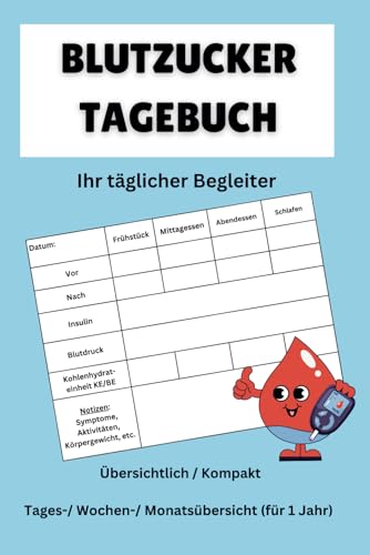 Blutzucker Tagebuch - ihr täglicher Begleiter für 1 Jahr: für Typ 1 & Typ 2 Diabetes; klein und kompakt mit Tages- Wochen- und Monatsübersicht; ... Blutdruck, Kohlenhydrateinheit, Notizen usw.
