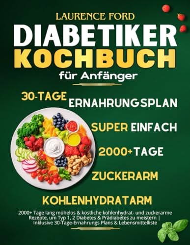 Diabetiker Kochbuch für Anfänger: 2000+ Tage lang mühelos & köstliche kohlenhydrat- und zuckerarme Rezepte, um Typ 1, 2 Diabetes & Prädiabetes zu ... 30-Tage-Ernahrungs Plans & Lebensmittelliste