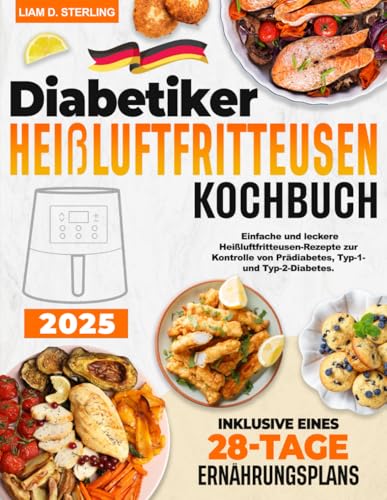 Diabetiker Heißluftfritteusen Kochbuch: Einfache und leckere Heißluftfritteusen-Rezepte zur Kontrolle von Prädiabetes, Typ-1- und Typ-2-Diabetes. Inklusive eines 28-Tage-Ernährungsplans