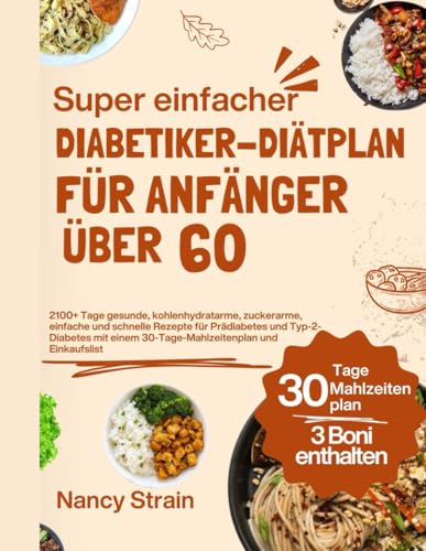 Super einfacher Diabetiker-Diätplan für Anfänger über 60: 2100+ Tage gesunde, kohlenhydratarme, zuckerarme, einfache und schnelle Rezepte für Prädiabetes und Typ-2-Diabetes mit einem 30-Tage-Mahlzeit