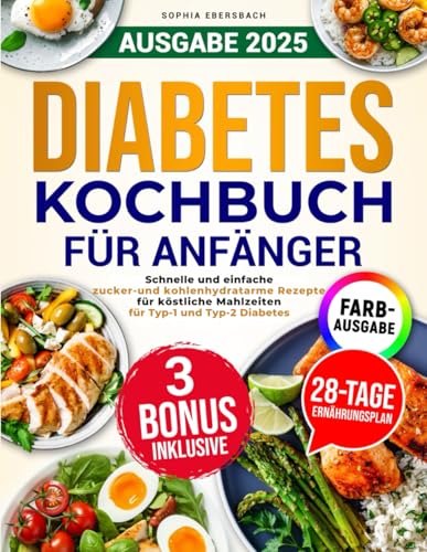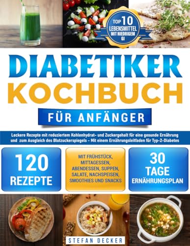 Diabetes Kochbuch für Anfänger: Schnelle und einfache zucker- und kohlenhydratarme Rezepte für köstliche Mahlzeiten für Typ-1 und Typ-2 Diabetes mit 28-Tage-Speiseplan