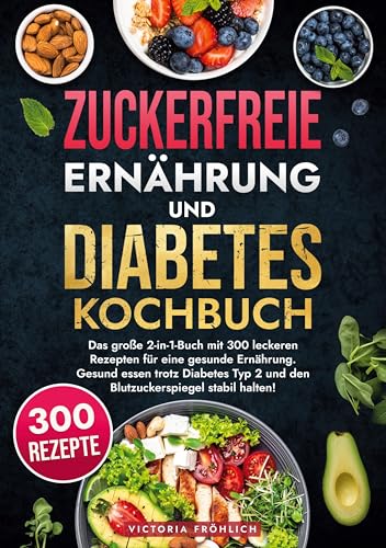 Zuckerfreie Ernährung und Diabetes Kochbuch: Das große 2-in-1-Buch mit 300 leckeren Rezepten für eine gesunde Ernährung. Gesund essen trotz Diabetes Typ 2 und den Blutzuckerspiegel stabil halten!