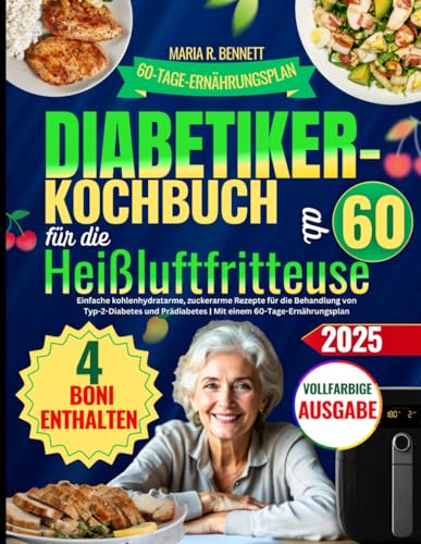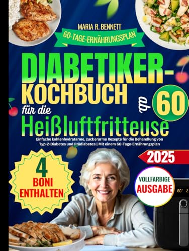 Diabetiker-Kochbuch für die Heißluftfritteuse ab 60: Einfache kohlenhydratarme, zuckerarme Rezepte für die Behandlung von Typ-2-Diabetes und Prädiabetes | Mit einem 60-Tage-Ernährungsplan