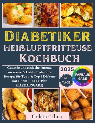Diabetiker Heißluftfritteuse Kochbuch ( Alle Heißluftfritteusen ): Gesunde und einfache fetteme, zuckerme & kohlenhydrateme Rezepte für Typ 1 & Typ 2 Diabetes mit einem - 14Tag-Plan (FARBAUSGABE)