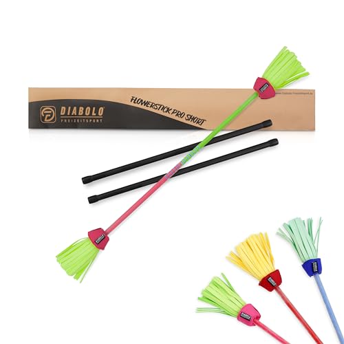 Diabolo Fritidssport Flowerstick Pro Short (grön-rosa) – kort blompinne av glasfiber med 2 handstavar, UV-reaktiv, för avancerade och proffs