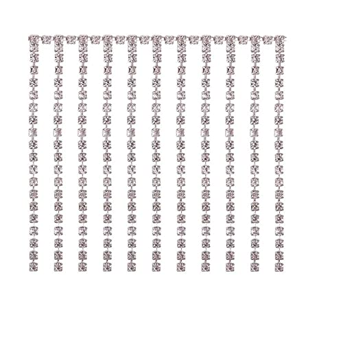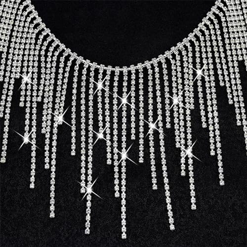 AIEX 91cm Lång Strass Tofs Kedja, Glitter Kristall Topp Diamant Fransar för Bröllops Fest Brud Tillbehör Gör-Det-Själv Hantverk (Silver)