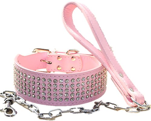 haoyueer 5 cm bred läder strass kristall diamant smyckad hund halsband kedja koppel koppel koppel koppel kraftig passform Pitbull, bulldogg, Doberman (S, rosa)
