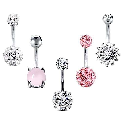 AceFun navelstång navelringar stänger 14 g 6 mm 10 mm med kulomplacering kirurgiskt stål turkos kedja pärla diamant CZ navelring för kvinnor män, Metall