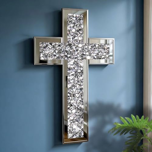 GIMORRTO speglat kors väggdekor – krossad diamant inbäddad glasspegel, 38 x 25 cm