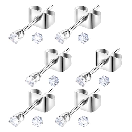 Jiamiaoi Örhängen Herr Örhängen Män Diamant 3mm-8mm Örhängen 925 Silver För Kvinnor Och Män 18K Vitguldpläterad, 6mm, Sterling silver, kubisk zirkonia, Kubisk zirkonia