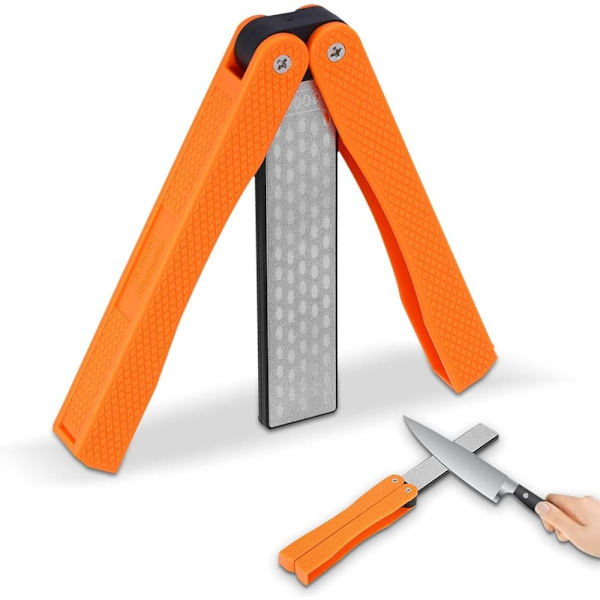Dubbelsidig bryne, hopfällbar bärbar bryne, knivslipare, halkfri diamantbryne för slipning av köksknivar, saxar och köksknivar