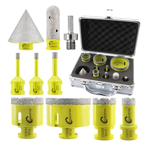 SANLEETEK Diamantkakelborrsats 11 stycken (6/8/10/20/35/50/68/100 20 mm fingerfräs + 50 mm diamant fasborr + adapter) diamanthålsåg set för keramiska plattor porslin, marmor, granit, M14 gänga