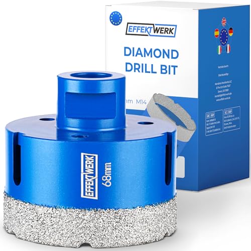 EffektWerk Masonry Kakelborr (68mm), Diamantkärnborr med M14 skaft, Diamanthålsåg för hårda kakel, Granit, Keramik & Porslin Stengods