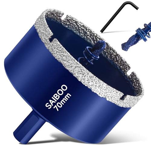 SUQIN Diamanthålsåg 70 mm Med Centreringsborr,Kolstål Glasborr Med Beläggning, Diamant ihålig Borrkrona, Kakelborr för Skärning Av Glas/Kakel/Keramik/Marmor/Granit