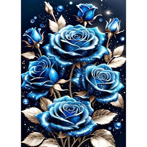 GDYEEH DIY 5D Roses Diamond Art Painting Kit, Blue Roses Full Round Drill Sparkling Diamond Painting Set, Blommor Diamantmålning Konst Hantverk Kits för Vuxna Nybörjare, Heminredning 30 x 40 cm