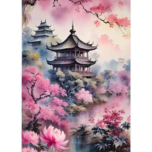 GDYEEH Palace Diamond Art Painting Kits, 5D DIY kinesisk stil helrund borr gnistor diamantmålning bild, blommor diamantmålning konst hantverk kit för vuxna nybörjare heminredning 30 x 40 cm