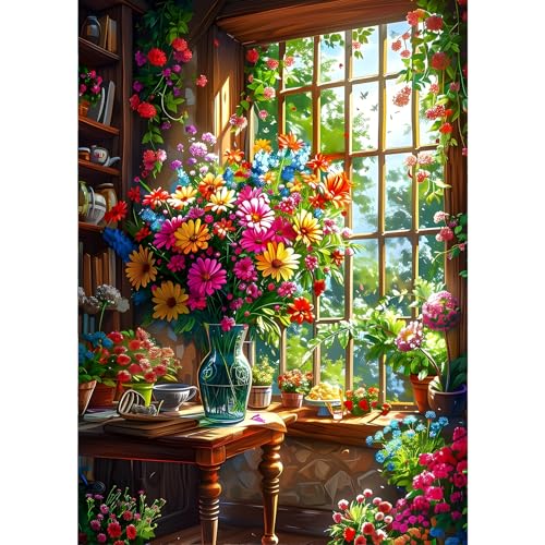 GDYEEH Colorful Flowers Diamond Art Painting Kits, 5D DIY Fönster Full Round Borr Sparkling Diamantmålning, Diamantmålning, Konst Hantverkssatser för Vuxna Nybörjare Heminredning 30 x 40 cm