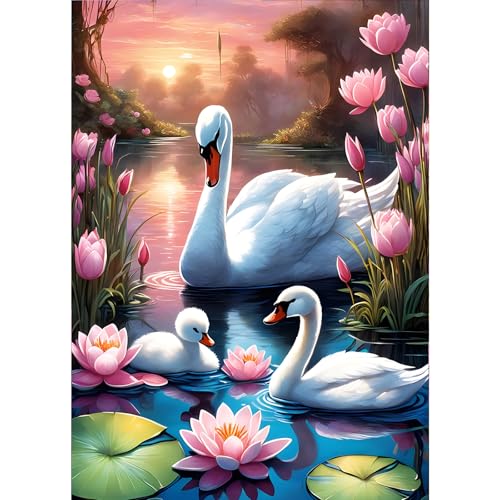 GDYEEH DIY 5D vit Swan Diamond Art Painting Kit, Blommor Full Round Drill Sparkling Diamantmålning Bild, Solnedgång Diamantmålning Konst Hantverkssatser för vuxna nybörjare, heminredning 30 x 40 cm
