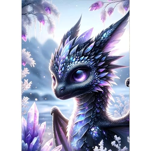 GDYEEH DIY 5D Dragon Diamond Art Painting Kit, Full Round Drill Sparkling Picture, Little Dragon Art Craft för Vuxna Nybörjare, Heminredning 30 x 40 cm