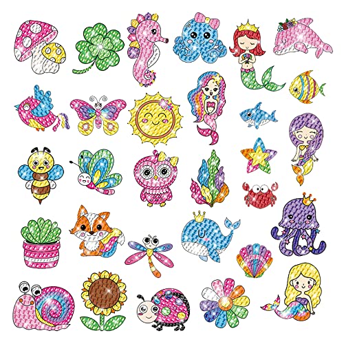 Diamantmålning Klistermärken, CAYUDEN 30 st 5D Sjöjungfru Diamantmålning Bilder Barn DIY Mermaid Diamond Painting Sticker Kit Barn Flickor Diamant Målning Klistermärken Set för Barn 6 8 10 12 Vuxen