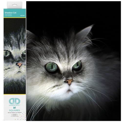 DIAMOND DOTZ DQ7.002 – Original 5D Diamond Painting Squares set skuggkatt, kreativt set med 11 067 fyrkantiga diamantmosaikstenar, målningsset ca 25 x 32 cm för vuxna och barn från 8 år