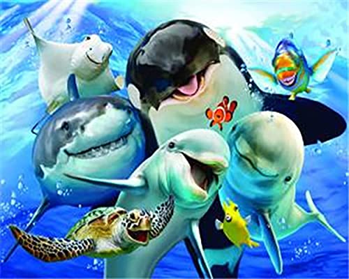 Diamond Painting Set, tavla med motiv "Underwater World" och tillbehör, storlek ca 44 x 33 cm, pysselset för målning med glittrande stenar för barn från 5 år