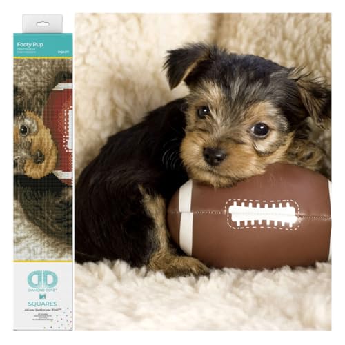 DIAMOND DOTZ DQ8.017 – Original 5D Diamond Painting squares set hund fotboll, kreativt set med 18 207 fyrkantiga diamantmosaikstenar, målset ca 32 x 41 cm för vuxna och barn från 8 år
