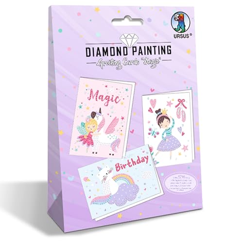 Ursus 43540001F – Diamond Painting Greeting Cards "Magic", pysselset för barn för kreativ utformning av gratulationskort, 3 stycken, DIN B6