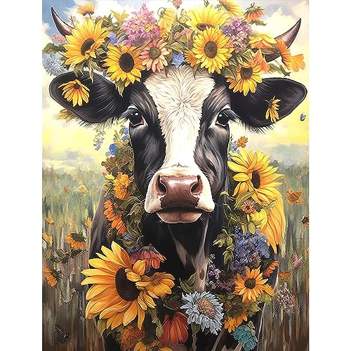 NAIMOER Ko Diamond Painting solrosor diamantmålning bilder, diamantmålning vuxna diamantmålning djur bilder diamantbilder barn 5D diamantmålning för hem, vägg och dekoration (30 x 40 cm)