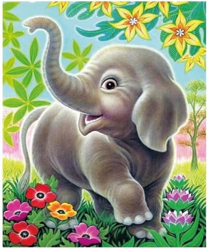 Pracht Creative hobby Diamond Painting set, bild med motiv elefant med blommor och tillbehör, pysselset för målning med strass, för barn från 5 år