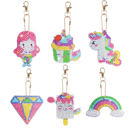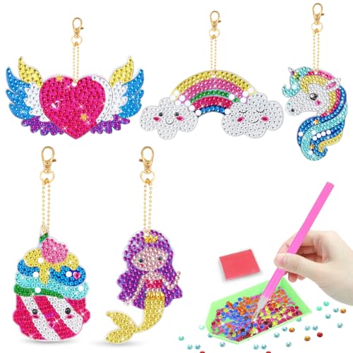 Wishstar Diamond Painting barn nyckelring, 5D diamantmålning bilder barn, diamantmålning set barn flickor, enhörning presenter för flickor, pysselset gör-det-själv gåvor 6 7 8 9 10 år