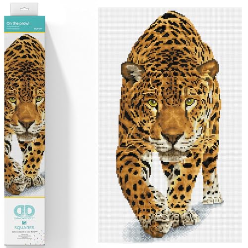 DIAMOND DOTZ DQ9.007 – Original 5D Diamond Painting Squares Set leopard, kreativt set med 23 205 fyrkantiga diamantmosaikstenar, målningsset ca 52 x 32 cm för vuxna och barn från 8 år