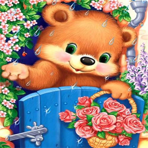 Pracht Creative hobby Diamond Painting set, bild med motiv teddy i trädgården och tillbehör, pysselset för målning med strass, för barn från 5 år