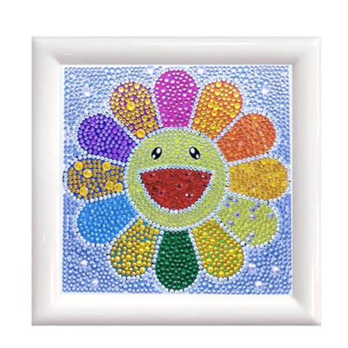 Diamond Painting Set, diagram med solrosmotiv och tillbehör, storlek ca 25 x 35 cm, pysselset för målning med glittrande stenar för barn från 5 år