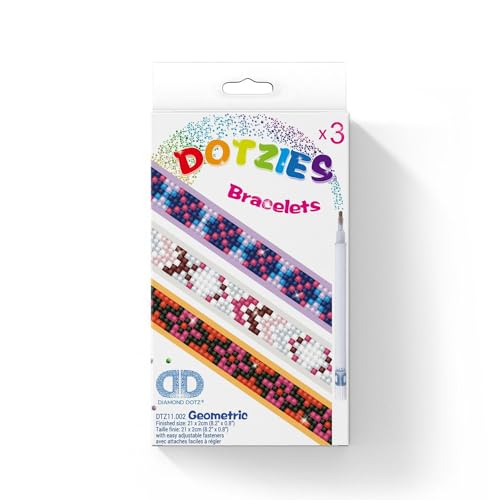 DIAMOND DOTZ DTZ11.002 – Original Diamond Painting Dotzies armband set geometriskt med 3 glittrande armband ca 21 x 2 cm, gör-det-själv diamant komplett set för barn från 8 år, extra gnistrande