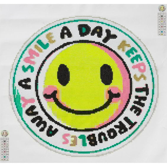 Bling Dots Glow, diamond painting för barn 8+ år – självlysande smiley Ø40 cm