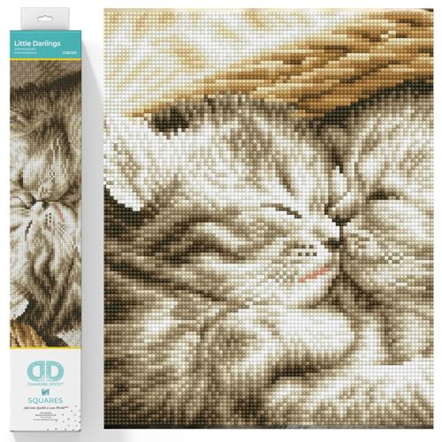 DIAMOND DOTZ DQ8.023 – Original 5D Diamond Painting Squares Set med katter spädbarn, kreativt set med 17 050 fyrkantiga diamantmosaikstenar, målningsset ca 29,5 x 41,5 cm för vuxna och barn från 8 år
