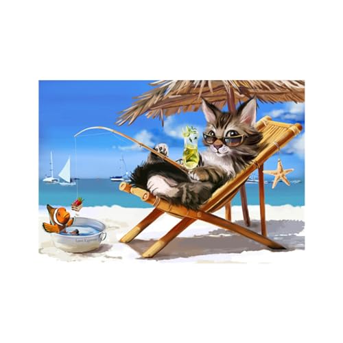 Pracht Creative hobby Diamond Painting set, bild med motiv katt på stranden och tillbehör, pysselset för målning med strass, för barn från 5 år