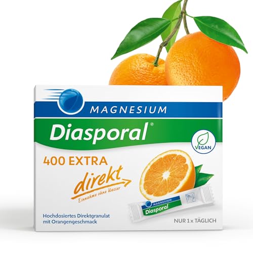 Magnesiumdiasporal 400 extra, dricksgranulat magnesiumpinnar | Högdoserad magnesiumcitrat | Extra fruktig apelsinsmak | Vid större behov | Vegan, socker- och glutenfri | 50 pinnar