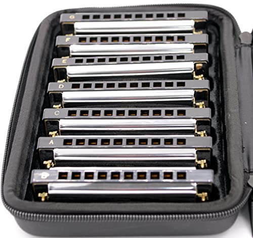 Tuyama® munspel set 7 munspel i resväskan diatoniskt olika tonarter C-D-E-F-G-A-Bb Dur/Major Blues Harps (TMH-213S-Noter)