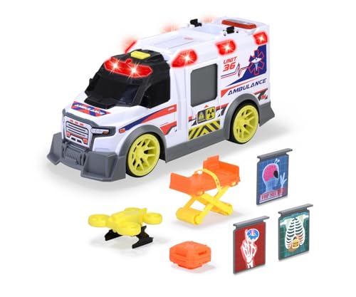 Dickie Toys 203307003 - Ambulans - Ambulans från Dickie Toys med Frihjul, Ljus, Ljud och Öppningsbara Dörrar Inklusive Bår, Drönare och Tillbehör, 41 cm, Från 3 år