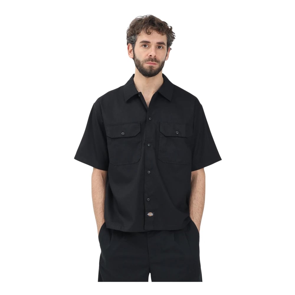 Dickies, Skjortor , Herr, L, Läder, Svart kortärmad arbetskläder skjorta