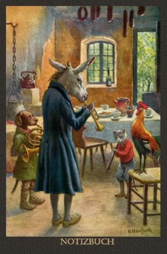 Notizbuch: Die Bremer Stadtmusikanten, old fashion / klassisches Motiv & Design - 100 Seiten/ 14,5 x 19cm/ liniert/ 90g m2/ cremeweißes Papier